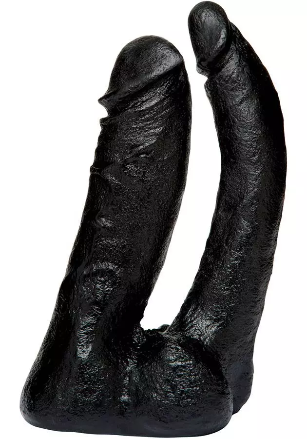 Schwarzer Doppelpenetrator für einen Vac-U-Lock Harness