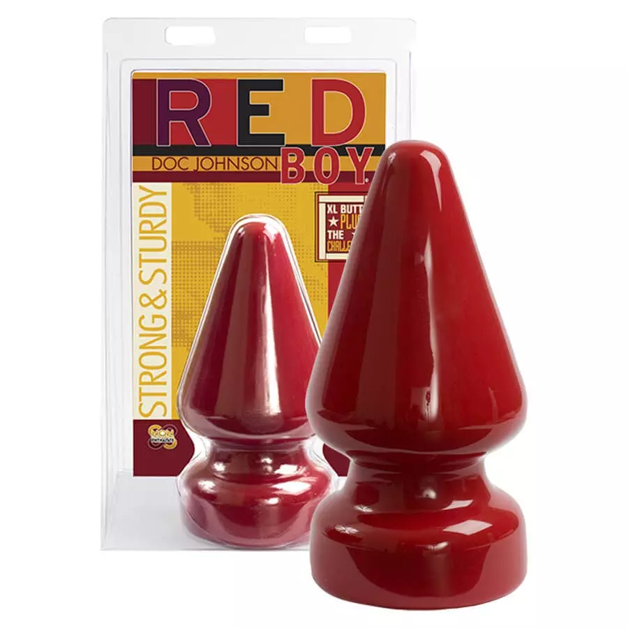 MEGA PLUG aus der RED BOY Serie Gigantischer Butt-Plug in Kegelform für Fortgeschrittene bis Profis. Aus gleitfreudigem Vinyl-Material. Mit Standfuß. Maße: ca. 22 x 12 cm Gewicht: ca. 1500g Farbe: knall-rot