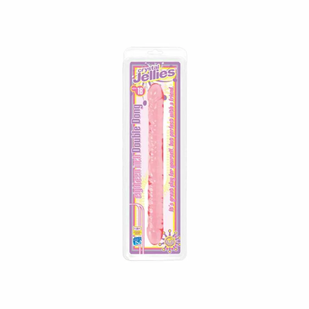Doc Johnson Crystal Jelly Double Dong ist ein weicher und flexibler Twist auf dem ursprünglichen Dong, der alles begann. Der doppelseitige Schwanz hat die traditionelle Dicke und geäderte Textur, die wir alle kennen und lieben, sowie einen flexiblen Schaft. Alle Crystal Jellys sind aus Phthalat freiem, körperverträglichem Material hergestellt, dass Docs antibakterielle Sil-A-Gel-Formel enthält.