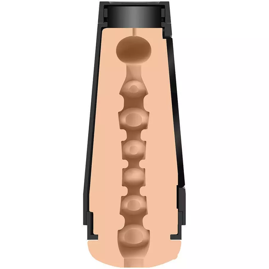 Das Case hat an der Seite zwei Druckflächen wo du selbst bestimmen kannst wie „eng“ der Masturbator sich innen anfühlen soll.
